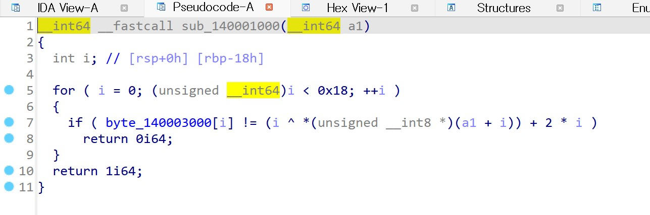 byte_140003000[i]๋ ์ ๋ ฅํ ๋ฌธ์์ด์ธ ๊ฒ ๊ฐ๊ณ