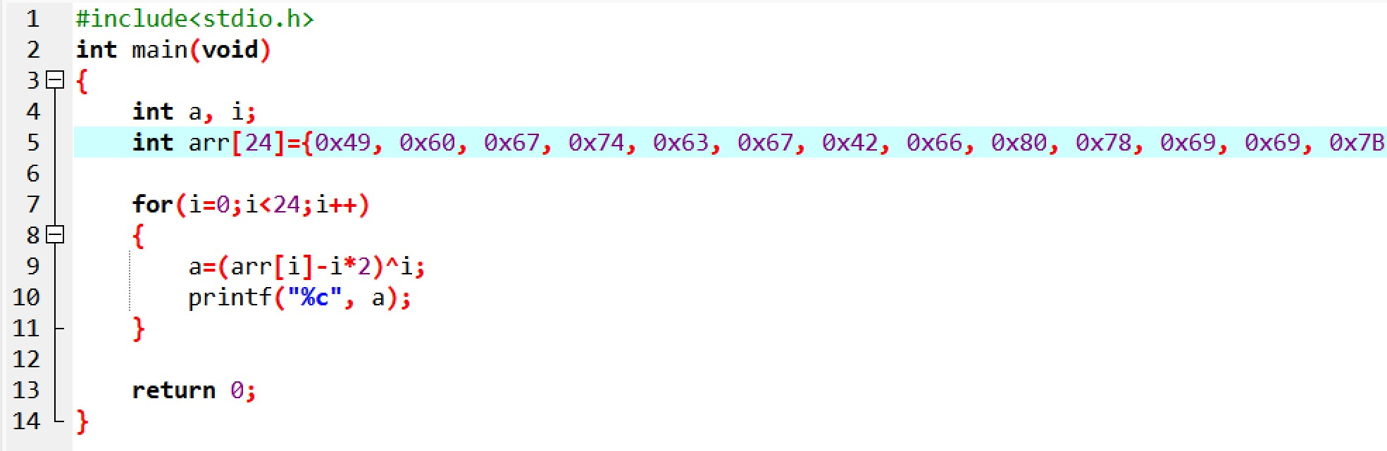 ์ฆ ์ ๋ต ๋ฌธ์์ด์ ์์๋๋ก 0๋ฒ๋ถํฐ 23๋ฒ๊น์ง(0x18=24) ๋ฐ๋ณต ํ์์ธ i์ XOR ์ฐ์ฐํ ๋ค 2 * i๋ฅผ ๋ํด์ค ๊ฒ์ด input ๊ฐ์ด์ด์ผ ํ๋ค๋ ๋ป์ด๋ค.
